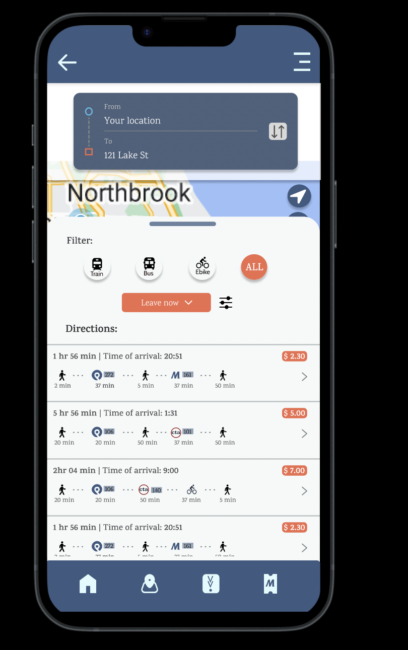 During usability testing, 3 out of 5 users did not click on the route icon as instructed. Why? Because they didn’t realize it was linked to route options!